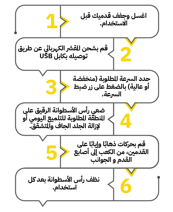 — مميزات : سهلة التنظيف، تصميم مريح ، سهل الحمل والاستخدام شحن USB متوافق مع شاحن الهاتف أو الكمبيوتر أو الباور بانك بطارية ليثيوم قابلة لإعادة الشحن 600 مللي امبير الحجم: 19.2*3.6 سم الجهد 5V/1A القوة: 3W — محتويات الحزمة: 2* رأسين 1* جهاز باديكير 1* كابل شحن 1* دليل المستخدم